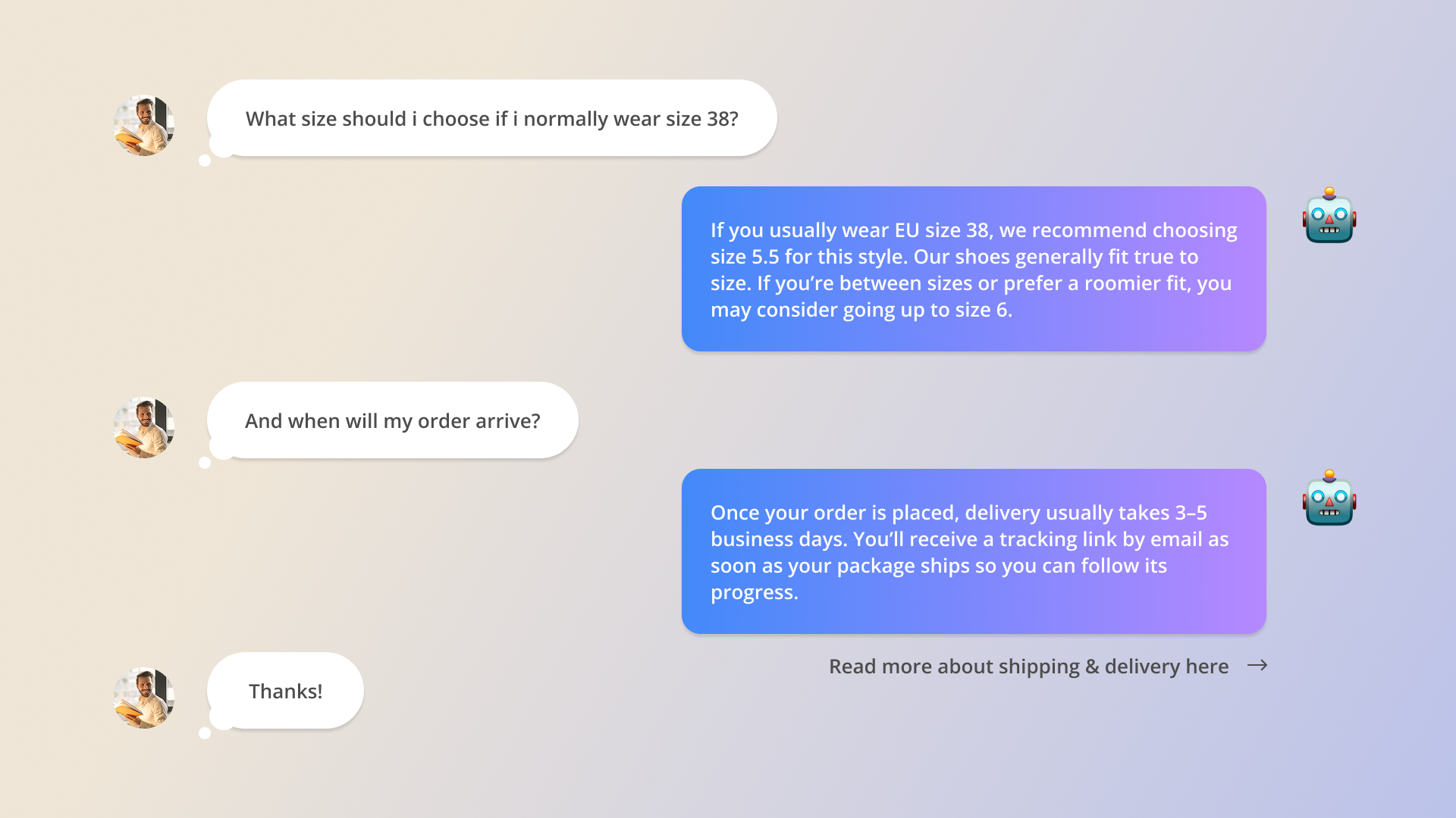 Med alle supportspørgsmål og kundedata samlet ét sted bruger vi derefter AI agenter, arbejdsgange og automatiseringer til at gøre din kundesupport nemmere end nogensinde før.