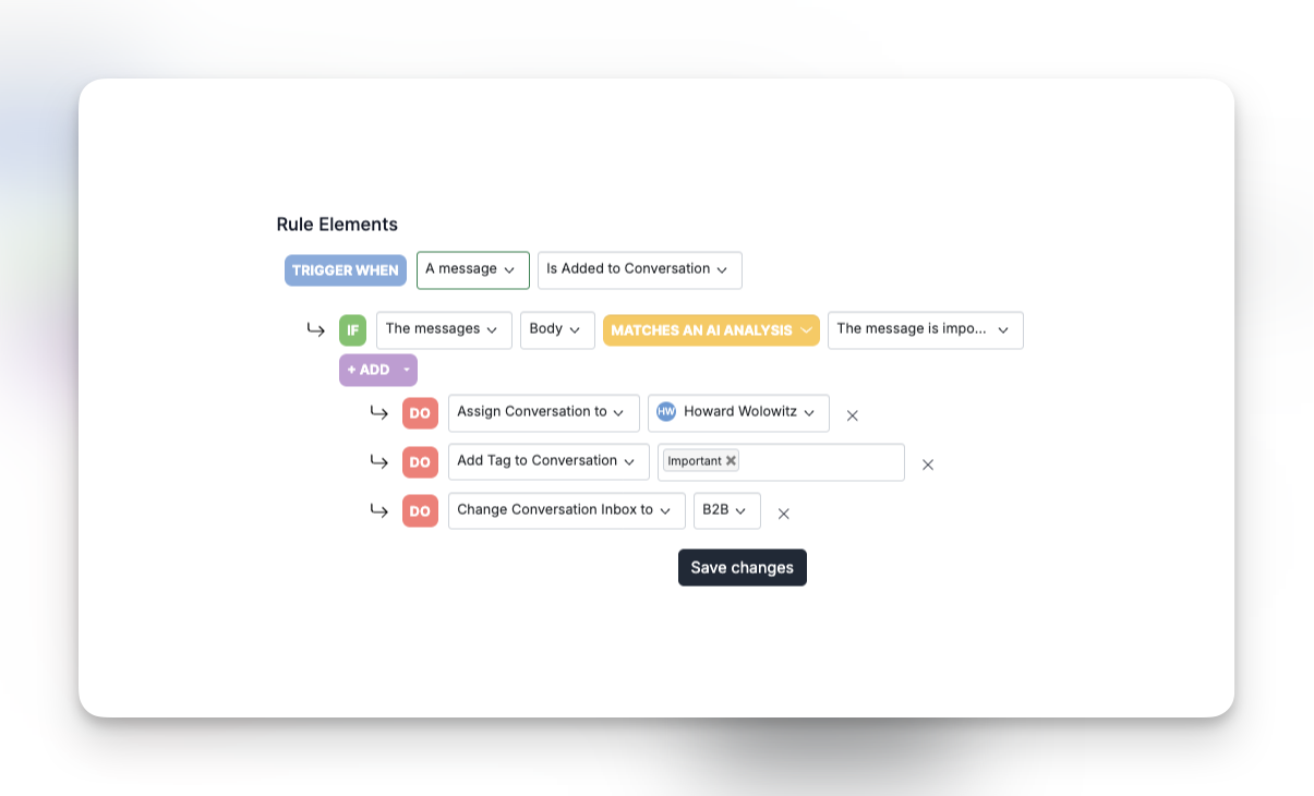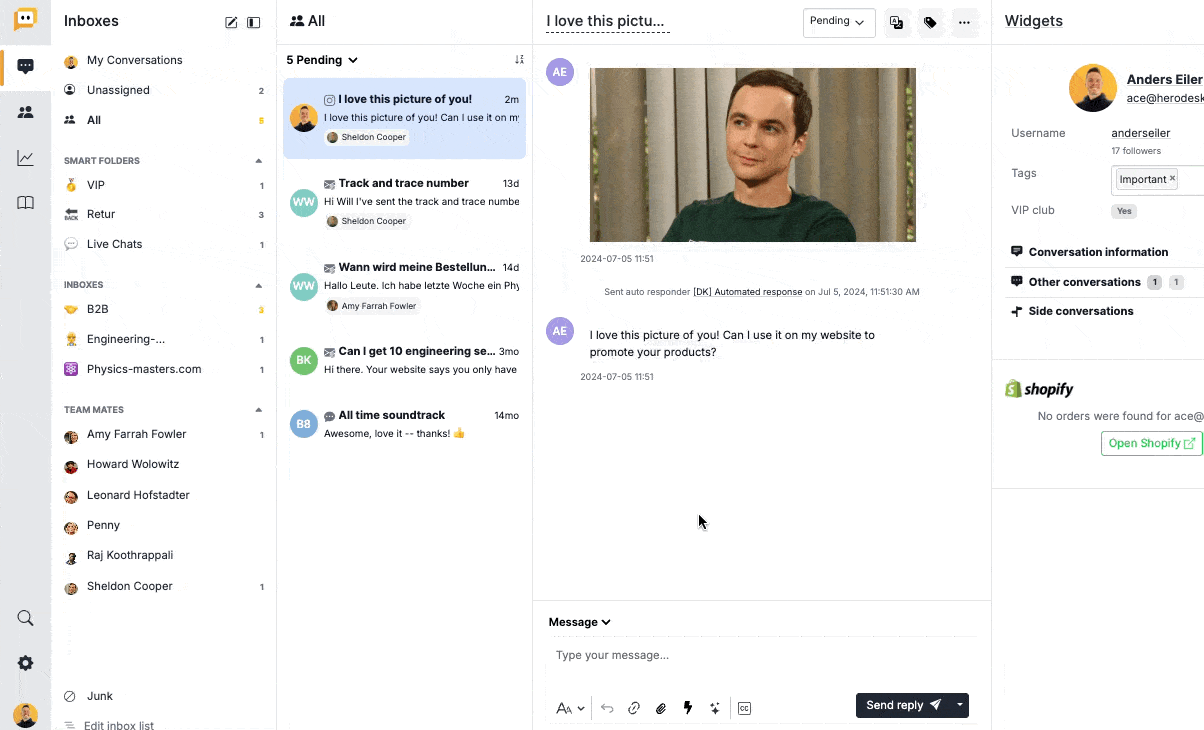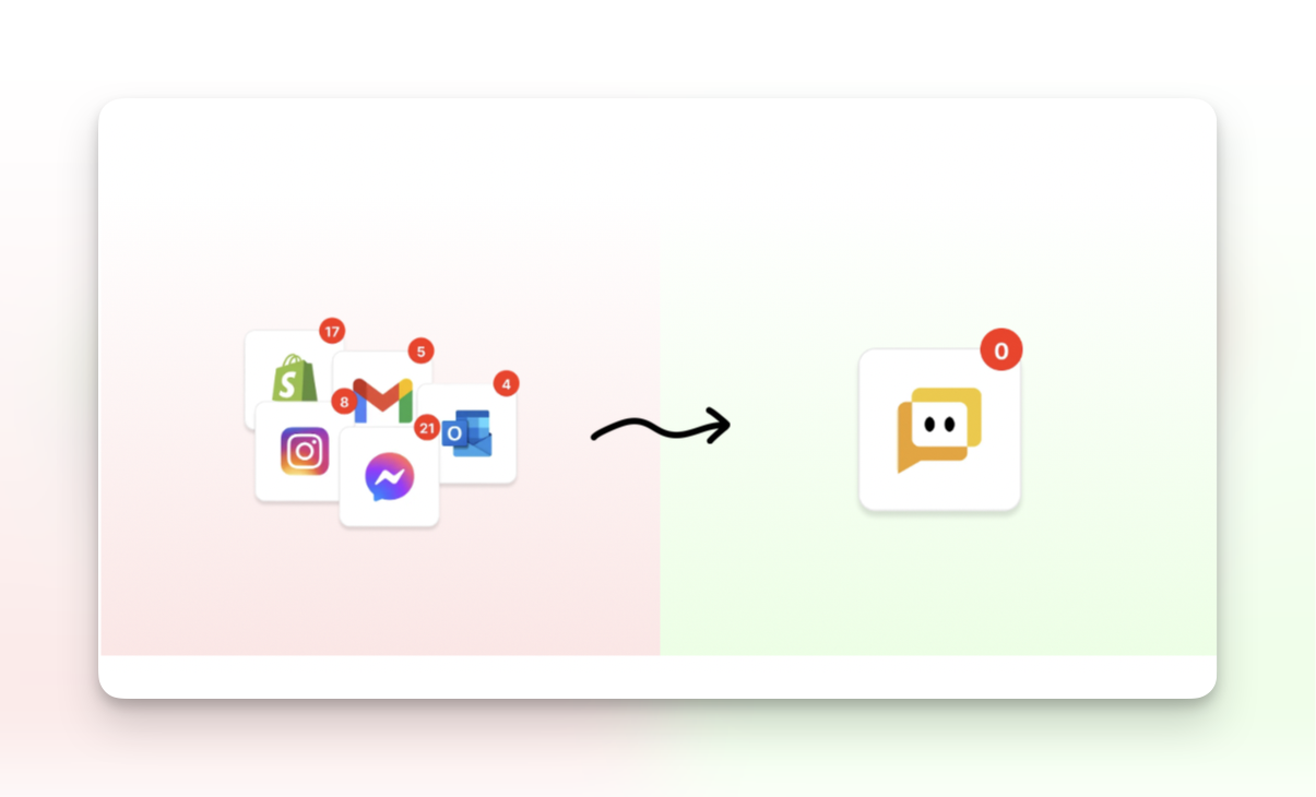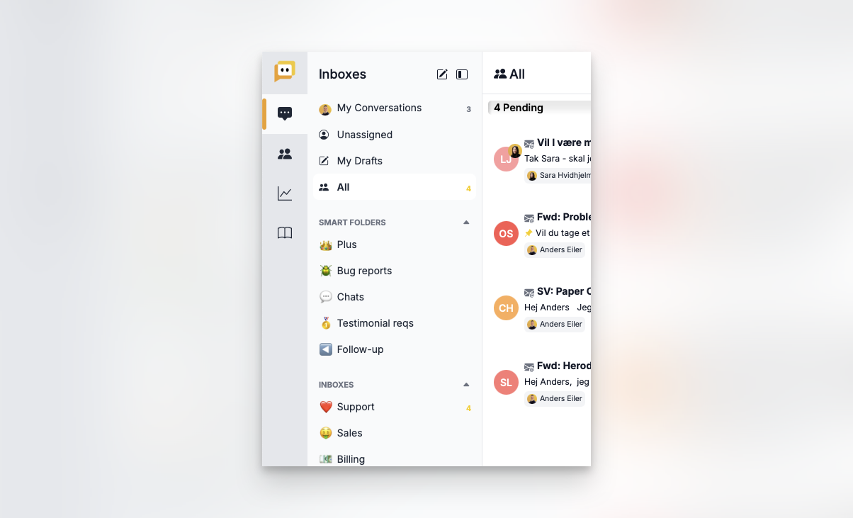 Først samler vi alle dine kunders spørgsmål i én oversigt. Derefter gør vores delte indbakke det nemt for dig og dit team at håndtere dem. Endelig hjælper vi dig med at gøre det nemmere end nogensinde før ved hjælp af AI og automatiseringer.