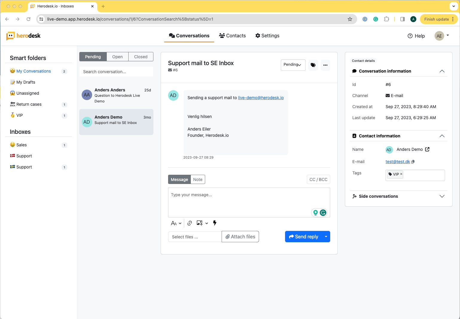 Kan du lide det? Lad os vide, hvad du synes. Send din feedback til support@herodesk.io